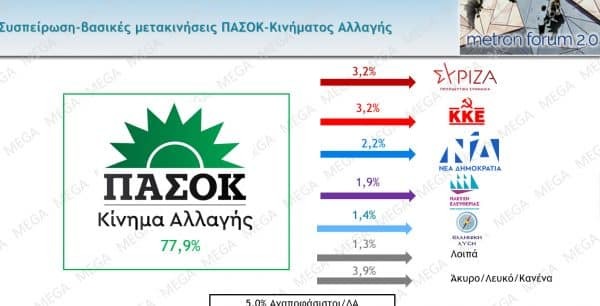 Τα αποτελέσματα δείχνουν περαιτέρω εκλογική υποχώρηση και καταγράφουν την συνθήκη κρίσης στην αξιωματική αντιπολίτευση αλλά η πλειοψηφία (46%) εκτιμά πως ούτε το ΠΑΣΟΚ ούτε ο ΣΥΡΙΖΑ μπορούν να αποτελέσουν ισχυρή αντιπολίτευση. Διαπιστώνεται, όμως, ότι 4 στους 10 κεντροαριστερούς πιστεύουν πως θα δυναμώσει το ΠΑΣΟΚ.