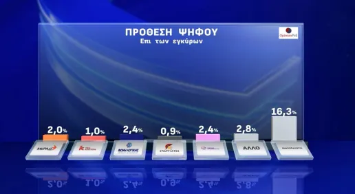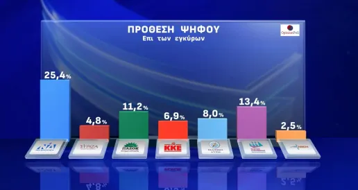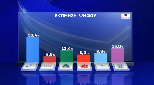 Δημοσκόπηση Opinion Poll: Τα ποσοστά των ευρωεκλογών υπερβαίνει η Ν.Δ στη δημοσκόπηση για λογαριασμό του Action24.