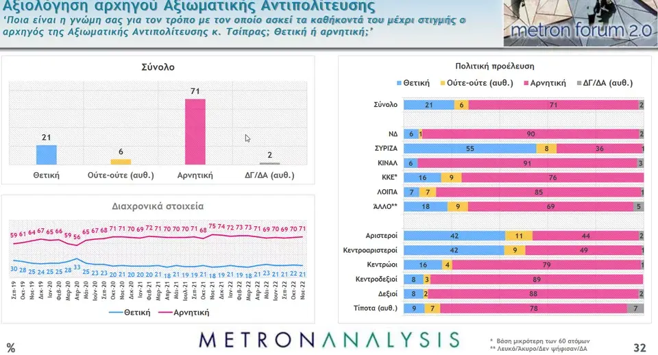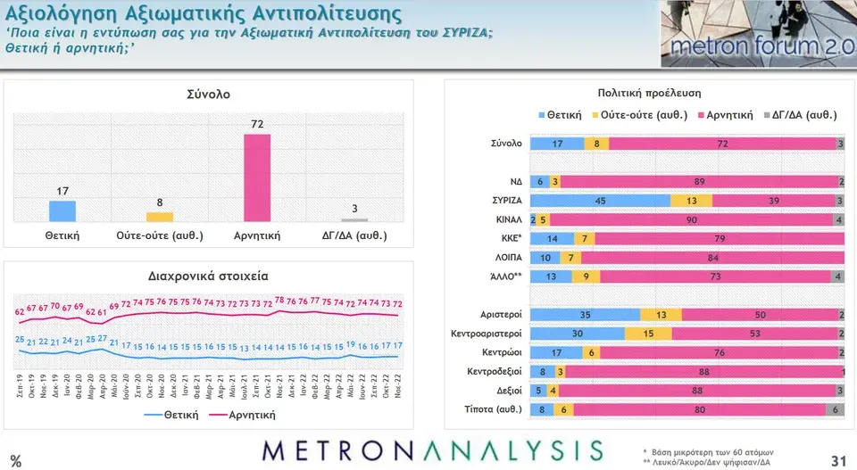 Επίσης, πάνω από 7 στους 10 αξιολογούν αρνητικά την αντιπολίτευση που ασκεί ο Αλέξης Τσίπρας και ο ΣΥΡΙΖΑ.