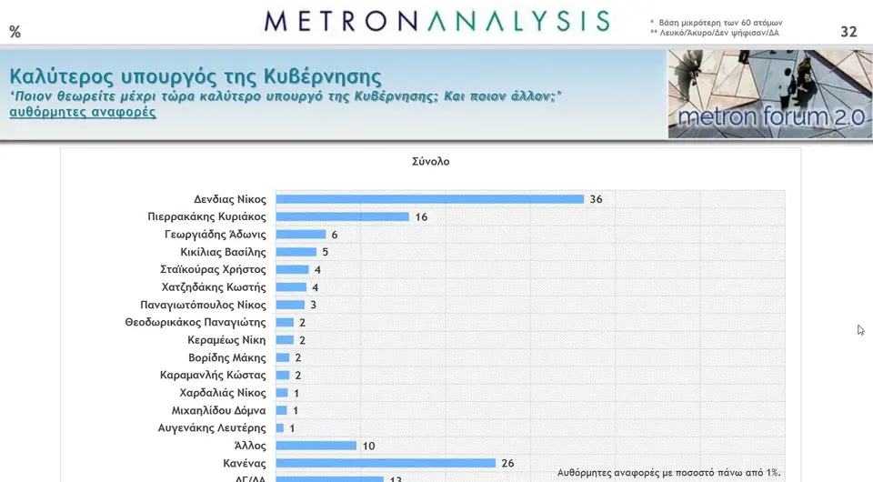 Δημοφιλέστερος υπουργός είναι ο ΥΠΕΞ Νίκος Δένδιας, με δεύτερο τον Κυριάκο Πιερρακάκη και τρίτο τον Άδωνι Γεωργιάδη.