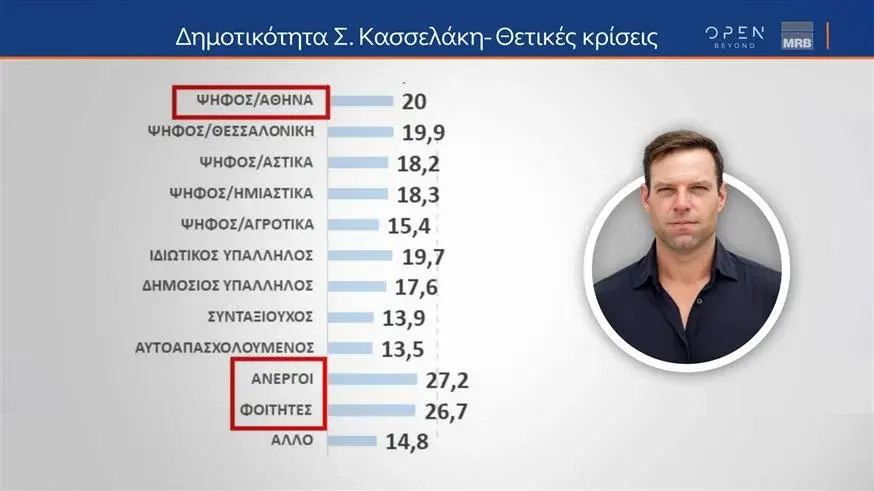 Οι ερωτηθέντες στην δημοσκόπηση ρωτήθηκαν για τον Στέφανο Κασσελάκη, αλλά και για τους κυβερνητικούς χειρισμούς σχετικά με τις πλημμύρες στη Θεσσαλία.