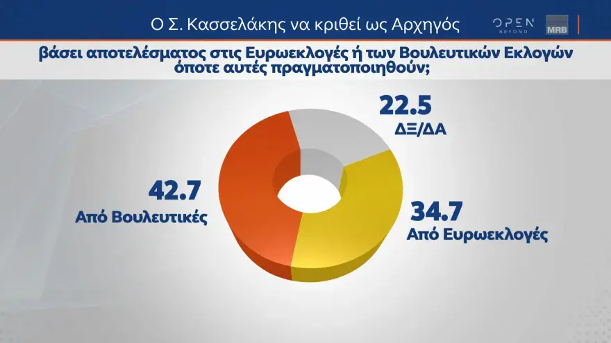 Το 42,7% ζητεί να κριθεί ο Στέφανος Κασσελάκης στις βουλευτικές εκλογές, ενώ το 34,7% να ζητεί να κριθεί μετά τις ευρωεκλογές.