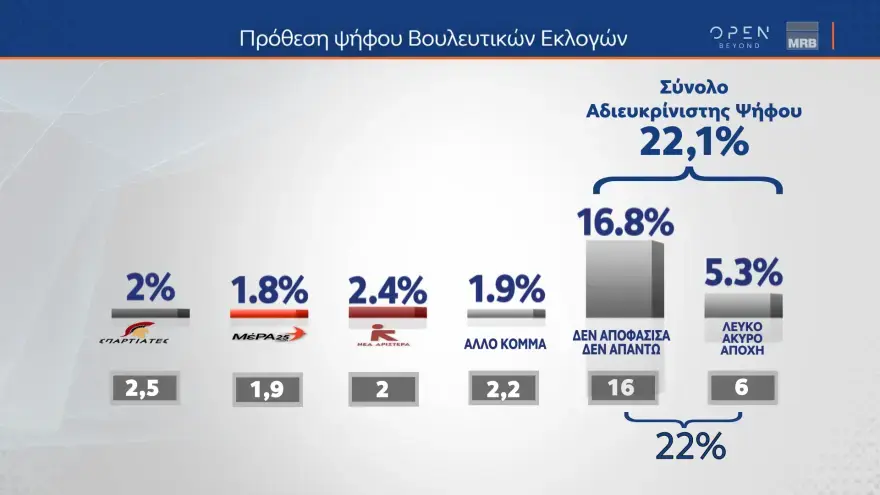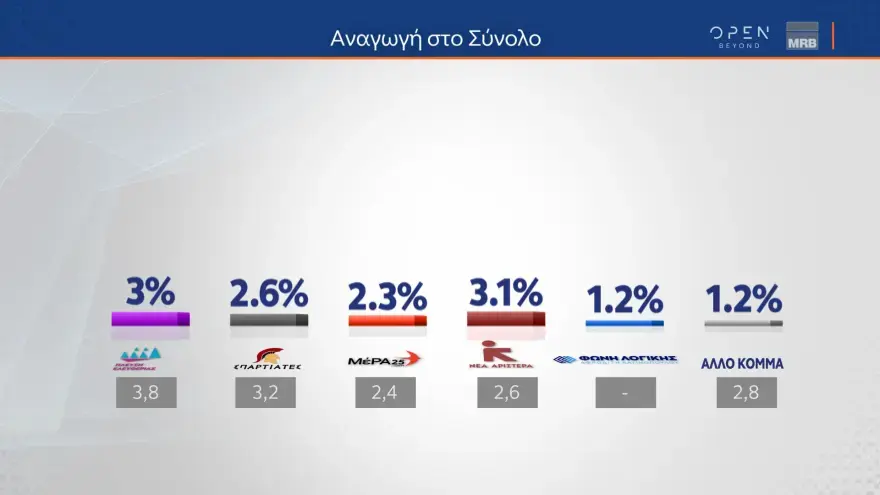 Σε αποδρομή οι Σπαρτιάτες, μένουν εκτός Βουλής και Ευρωβουλής. Οριακά παίρνει το εισιτήριο για να γίνει κοινοβουλευτικό κόμμα η Νέα Αριστερά, ενώ πάνω από το 1% εμφανίζεται η «Φωνή Λογικής» της Αφροδίτης Λατινοπούλου.