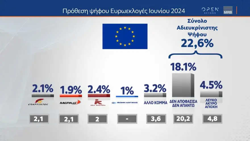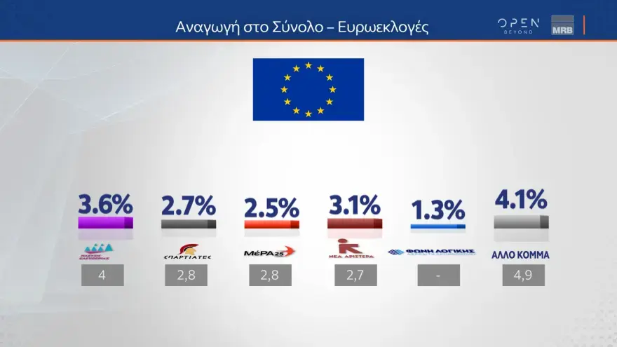 Στην πρόθεση ψήφου για τις ευρωεκλογές, τα ποσοστά καθορίζονται ως εξής: