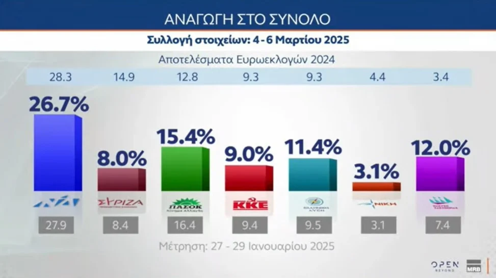 Δημοσκόπηση MRB : Η πρόθεση ψήφου
