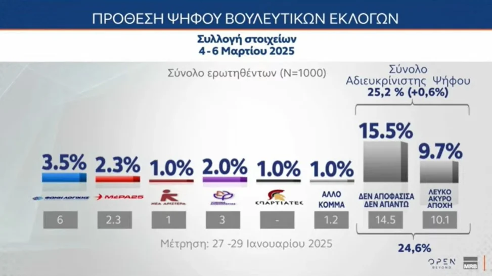 - Στο 25,2% η αδιευκρίνιστη ψήφος