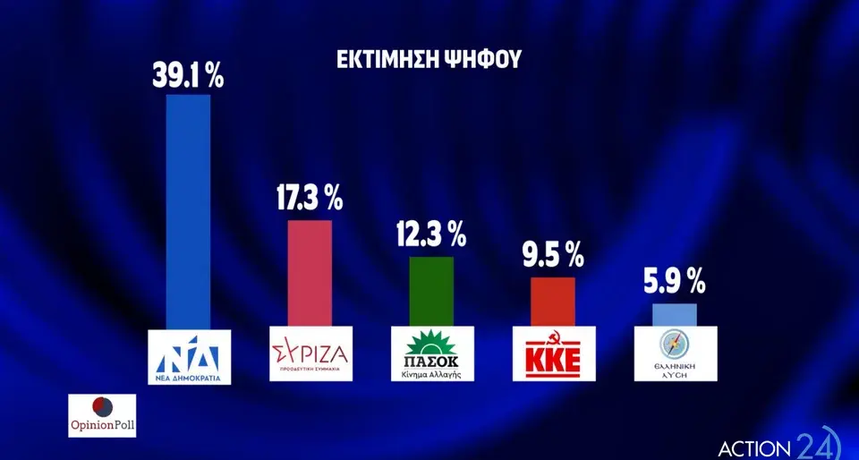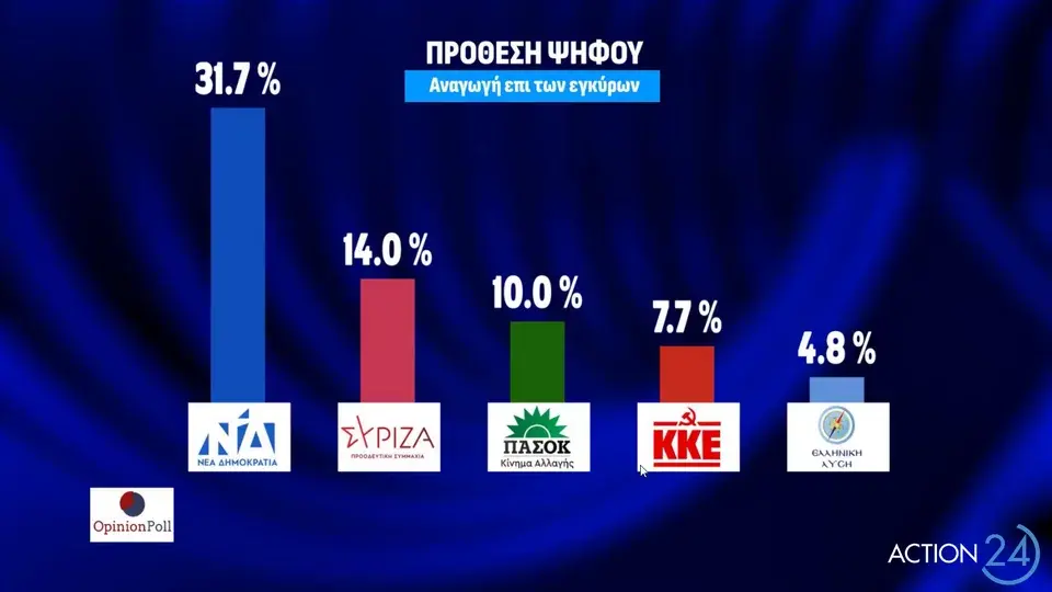 Η δημοσκόπηση παρουσιάστηκε στο Action 24 από την Opinion Poll.