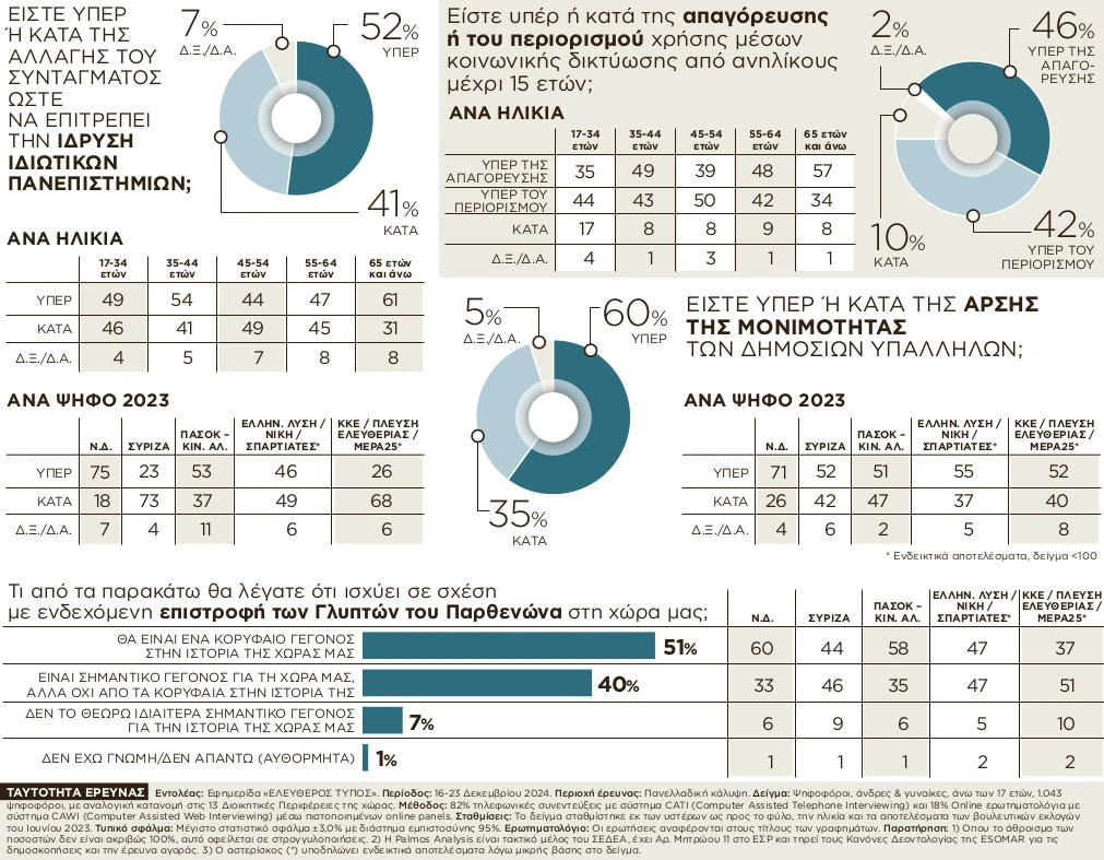Δημοσκόπηση Palmos Analysis για τον ΕΤ (Α’ ΜΕΡΟΣ): «Ναι» για ιδιωτικά ΑΕΙ, «όχι» για μονιμότητα στο Δημόσιο