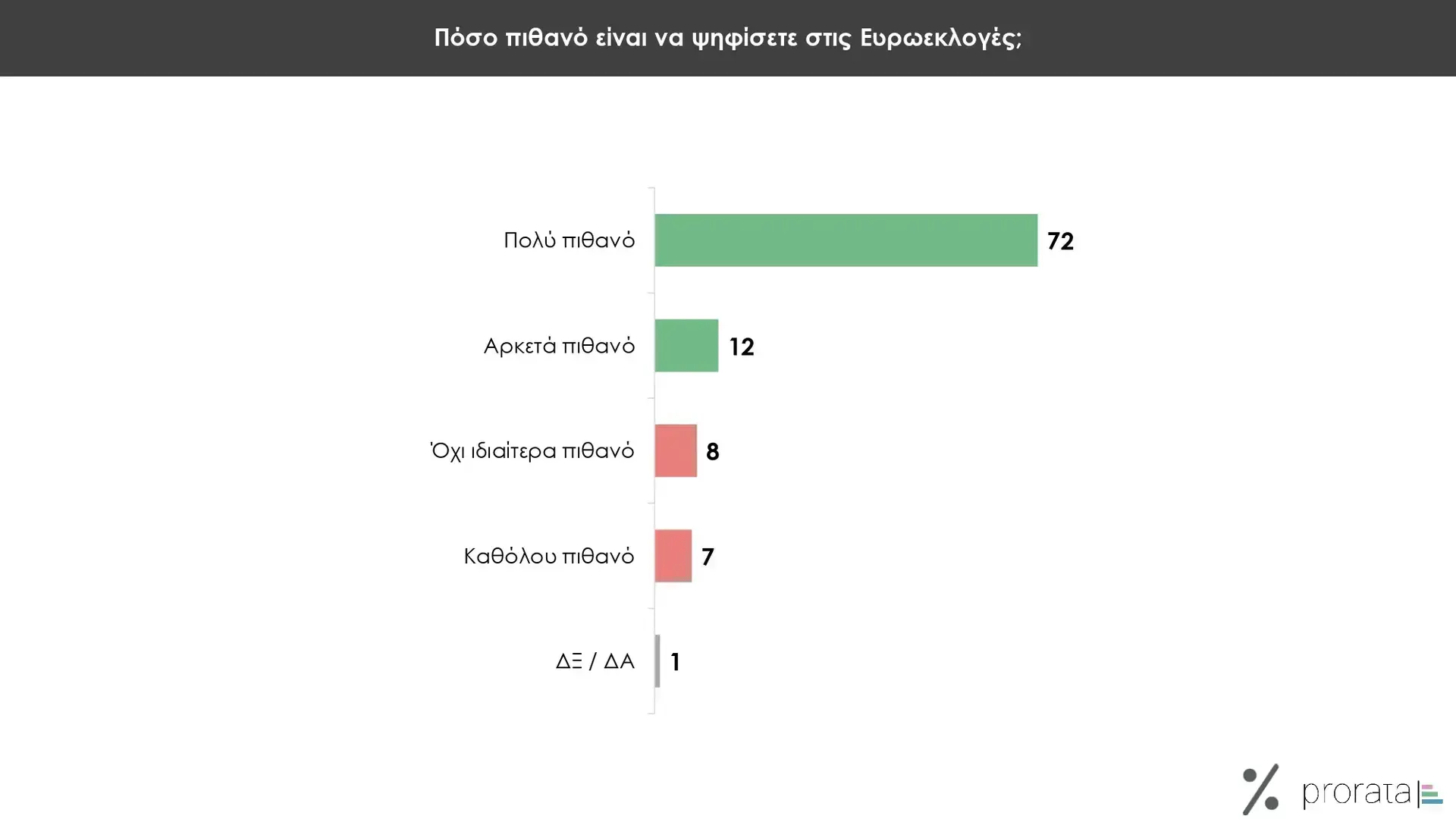 Ως εκ τούτου, λαμβάνοντας υπόψη και τον βαθμό βεβαιότητας των εκλογέων ως προς την συμμετοχή τους στις ευρωεκλογές αλλά και ως προς τη δηλωθείσα πρόθεση ψήφου δεν μπορεί να εκτιμηθεί με ασφάλεια ούτε ποια κόμματα θα εξασφαλίσουν εκπροσώπηση στην επόμενη ευρωβουλή, ούτε ποιο κόμμα θα καταταγεί στη δεύτερη θέση.