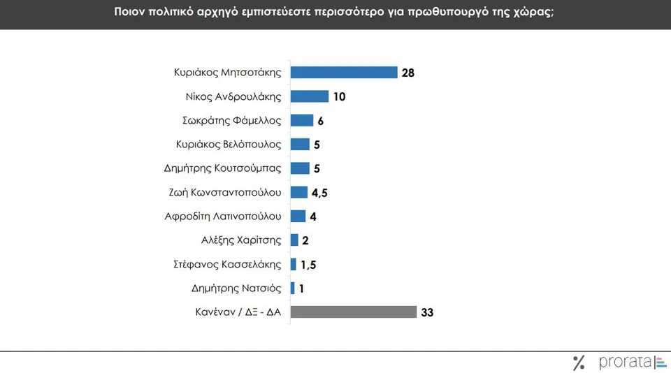 Δημοσκόπηση Prorata: Μητσοτάκης με διαφορά για πρωθυπουργός