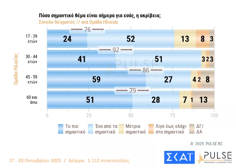 Η ακρίβεια και γενικά το κόστος ζωής σε συνάρτηση με τα έσοδα, αποτελεί το μεγάλο πρόβλημα των πολιτών στην Ελλάδα, όπως αποτυπώνεται και στην τελευταία δημοσκόπηση της Pulse. Το 84% των ερωτηθέντων δηλώνει την ακρίβεια ως το μεγαλύτερο ή το μεγάλο πρόβλημά τους, στέλνοντας ένα σαφές μήνυμα στην κυβέρνηση για το πού πρέπει να εστιάσει τις πολιτικές της.