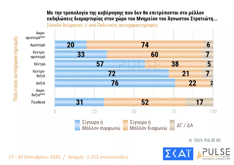 Όσον αφορά στην τροπολογία της κυβέρνησης για το Μνημείο του Άγνωστου Στρατιώτη, οι απαντήσεις των πολιτών ήταν σχεδόν μοιρασμένες. Πιο συγκεκριμένα, το 46% δήλωσε ότι συμφωνεί ή ,μάλλον συμφωνεί με τις ενέργειες της κυβέρνησης, ενώ το 44% δήλωσε ότι διαφωνεί ή μάλλον διαφωνεί.