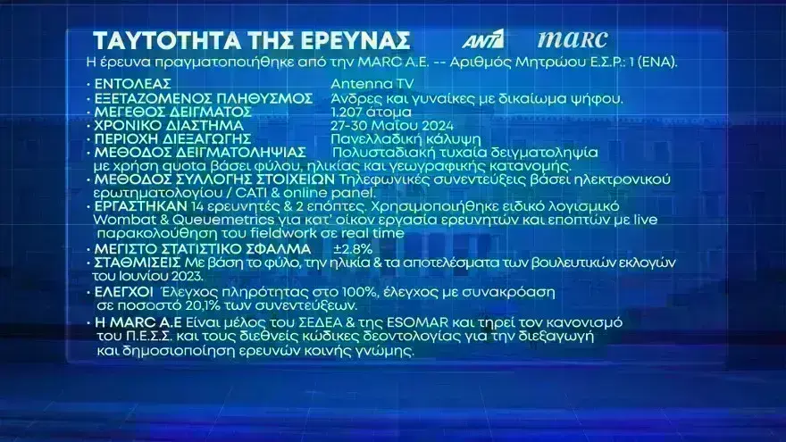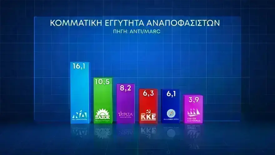 Η διαφορά της ΝΔ είναι μεγαλύτερη από το ποσοστό που δίνει η εταιρεία στο κόμμα της αξιωματικής αντιπολίτευσης 16,5%.
