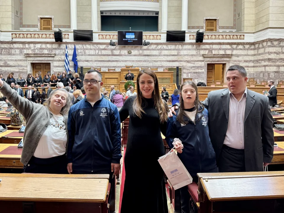Τα παιδιά με Σύνδρομο Down, δύο εκ των οποίων είναι αθλητές των Special Olympics και δύο από Το Εργαστήρι – Σύλλογος Γονέων, Κηδεμόνων και Φίλων ΑμεΑ, και τους συνοδούς τους, υποδέχθηκε εγκάρδια ο αντιπρόεδρος της Βουλής Θανάσης Μπούρας. Η Δόμνα Μιχαηλίδου ξενάγησε στους χώρους του Κοινοβουλίου τα παιδιά και τους συνοδούς τους, ενώ είχε την ευκαιρία να συζητήσει μαζί τους στο εντευκτήριο της Βουλής.