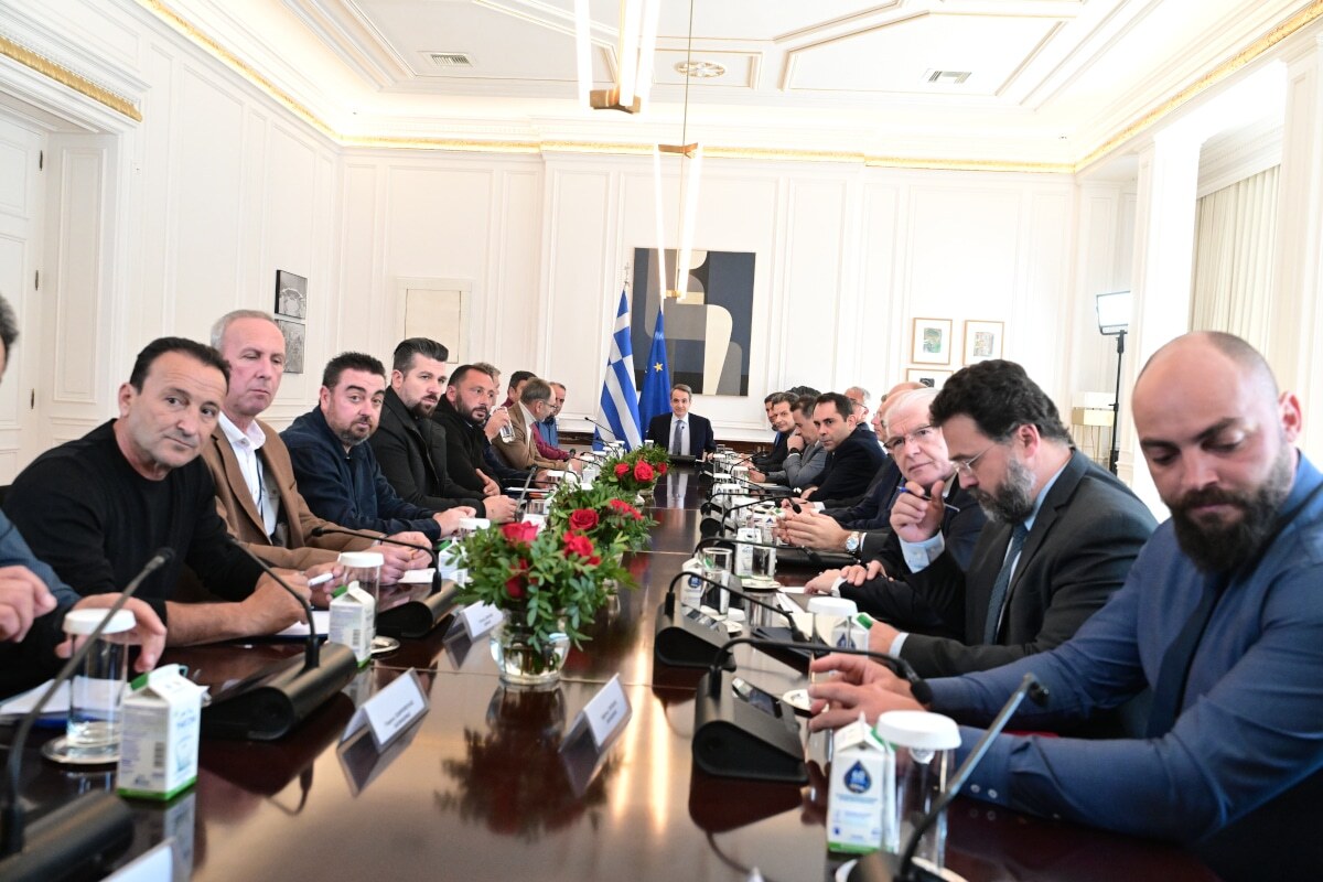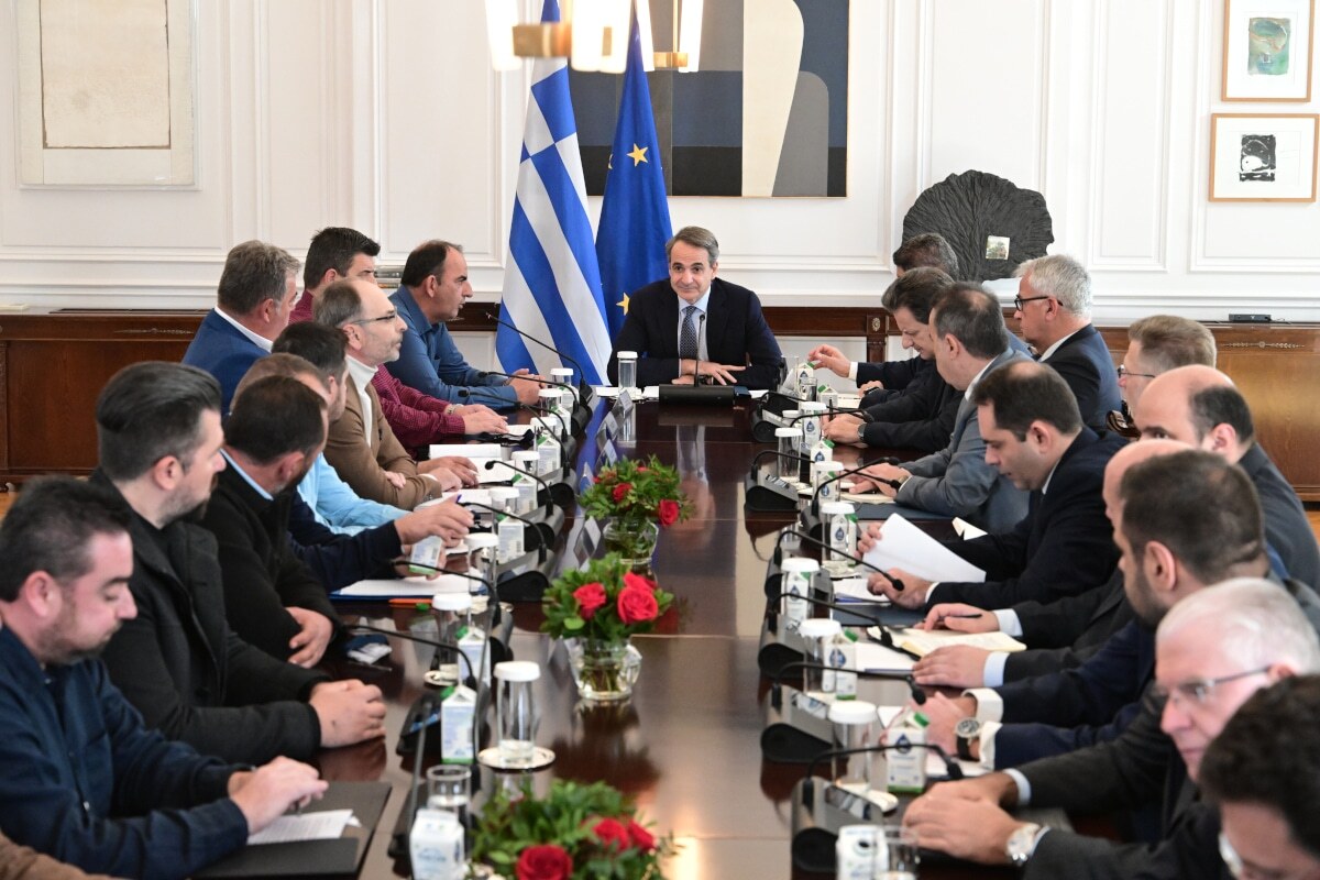 «Θέλω να τονίσω εξαρχής ότι είμαστε εδώ για να βρούμε λύσεις και ότι προσεγγίζουμε κι εμείς αυτή τη συνάντηση με κλίμα καλής διάθεσης», ανέφερε ο πρωθυπουργός Κυριάκος Μητσοτάκης, στην αρχική τοποθέτησή του κατά τη συνάντησή του με τους εκπροσώπους της Πανελλήνιας Επιτροπής μπλόκων των αγροτών, στο Μέγαρο Μαξίμου.