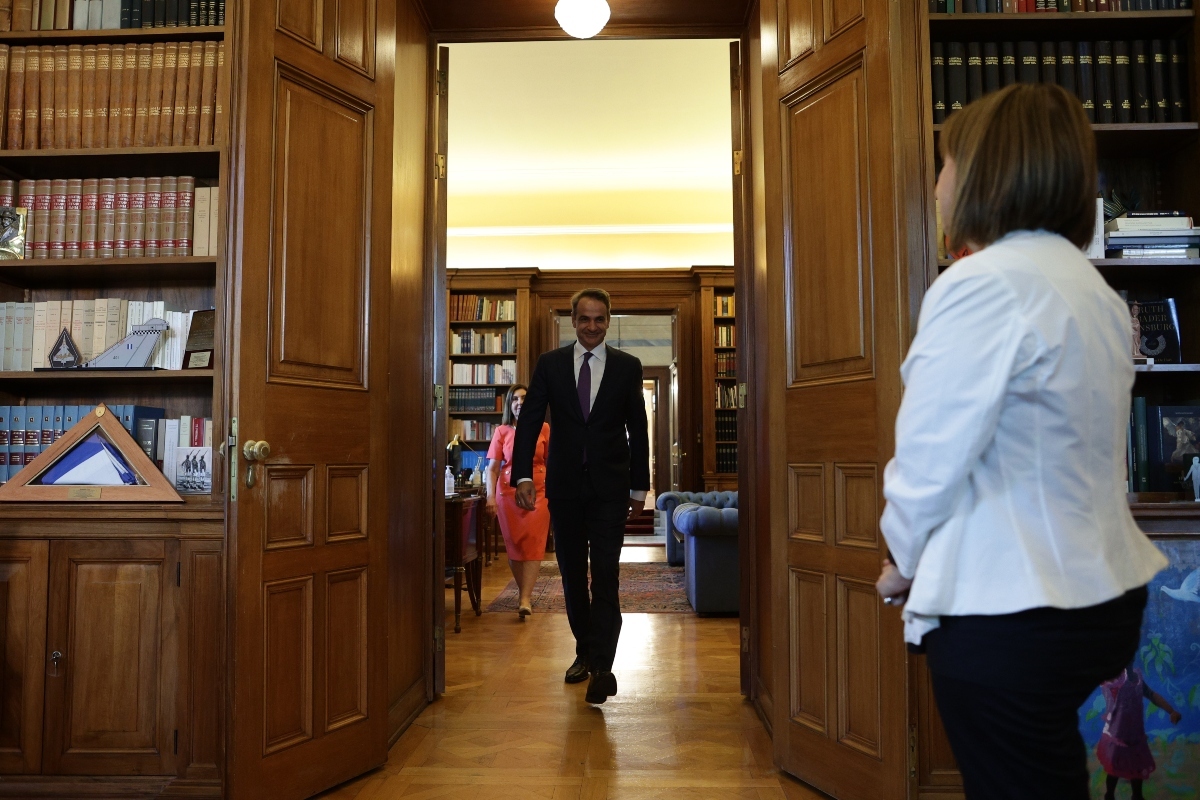 Η κ. Σακελλαροπούλου καλωσόρισε στο Προεδρικό Μέγαρο τον Κυριάκο Μητσοτάκη λέγοντας ότι «Μου έφερε το τελικό αποτέλεσμα των εκλογών ο Πρόεδρος της Βουλής ο κ. Τασούλας. Σας καλώ για να σας δώσω την εντολή σχηματισμού κυβέρνησης.».