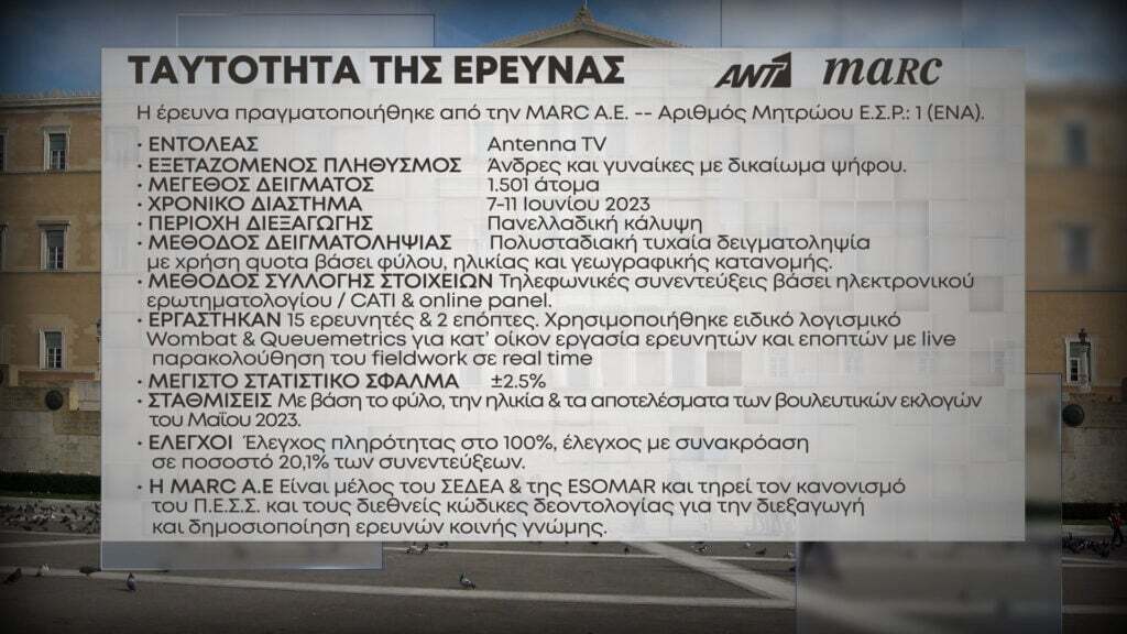 Δημοσκόπηση Marc: Στις 20,3 μονάδες η διαφορά της Νέας Δημοκρατίας από τον ΣΥΡΙΖΑ