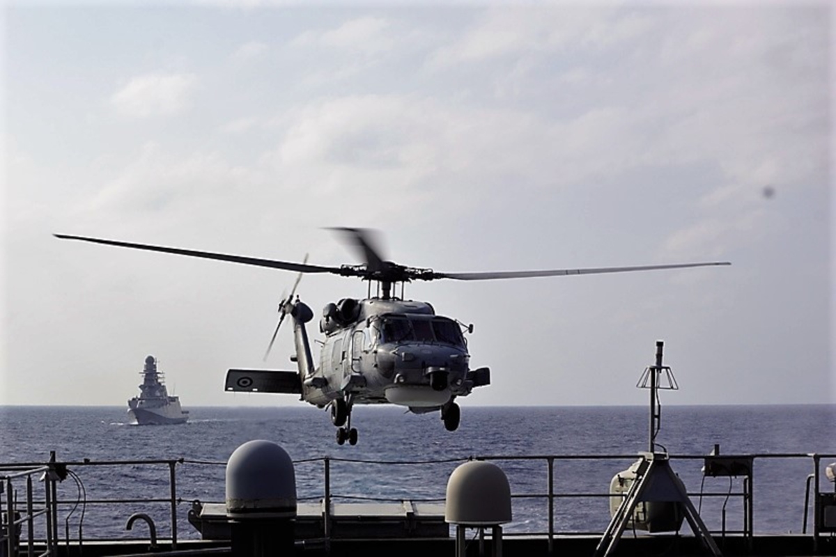 Για την αμυντική διπλωματία, έκανε αναφορά στη συμμετοχή της πατρίδας μας στην επιχείρηση «Ασπίδες» εξηγώντας το «τα συμφέροντα του Ελληνισμού δεν είναι μόνο ο στενός γεωγραφικός μας χώρος. Είναι οι θαλάσσιες οδοί που χρησιμοποιεί το εμπορικό μας ναυτικό, είναι η προστασία του εμπορίου και του επιπέδου ζωής της καθεμιάς και τους καθενός από τους Έλληνες πολίτες».