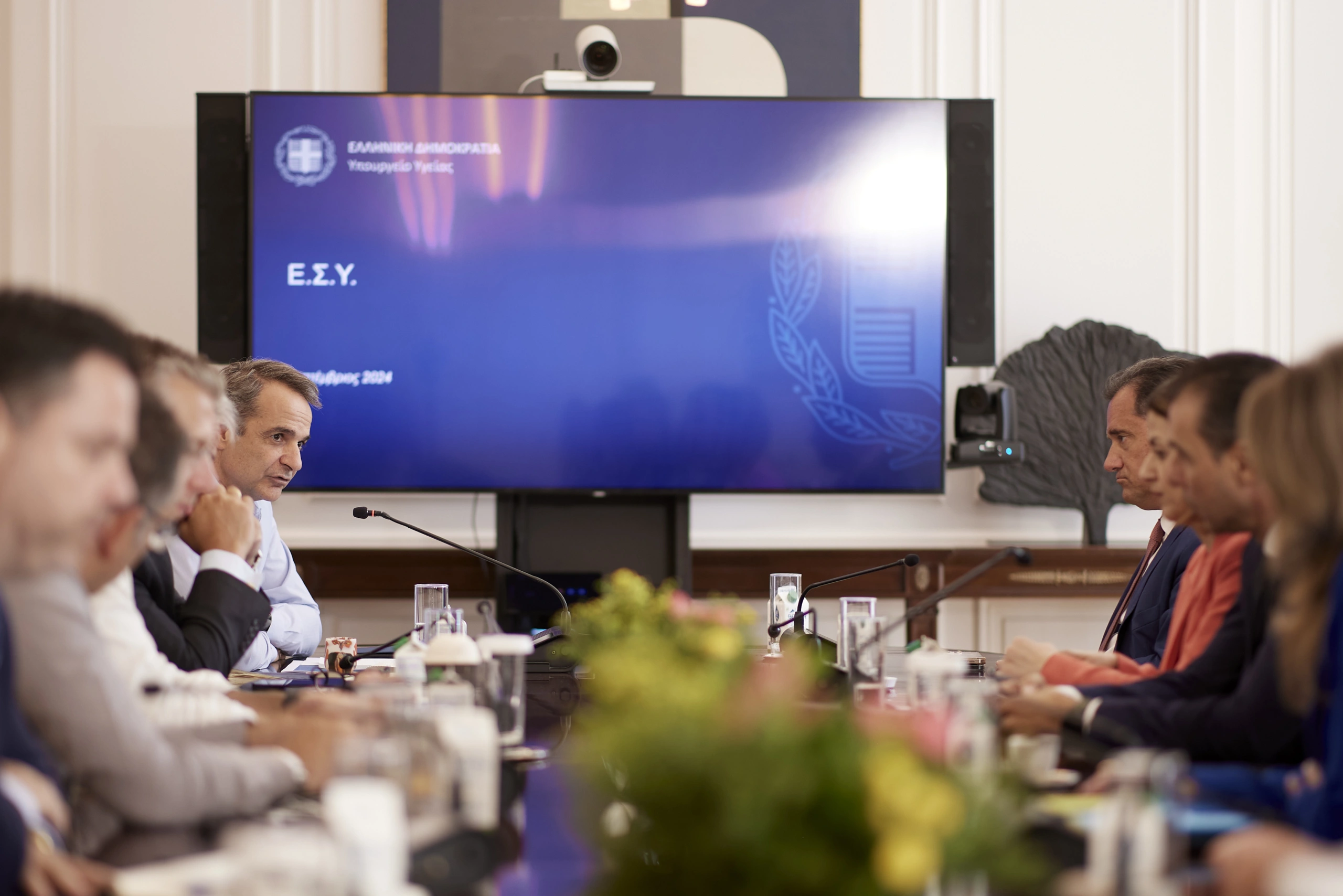 Στη σύσκεψη συμμετείχαν ο υπουργός Υγείας, Άδωνις Γεωργιάδης, οι υπουργοί Επικρατείας, Μάκης Βορίδης και Άκης Σκέρτσος, η αναπληρώτρια υπουργός Υγείας, Ειρήνη Αγαπηδάκη, οι υφυπουργοί Υγείας, Δημήτρης Βαρτζόπουλος και Μάριος Θεμιστοκλέους, και ο υφυπουργός παρά τω πρωθυπουργώ, Θανάσης Κοντογεώργης.