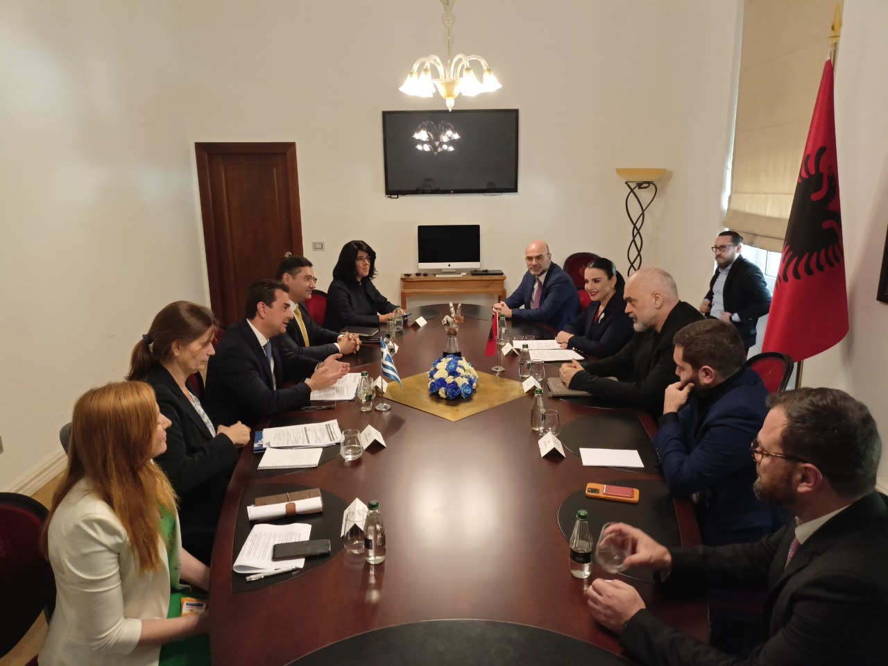 Ο Υπουργός Περιβάλλοντος και Ενέργειας, Κώστας Σκρέκας, δήλωσε: «Με την Υπουργό Υποδομών και Ενέργειας και την Υπουργό Περιβάλλοντος και Τουρισμού της Αλβανίας συζητήσαμε για θέματα αμοιβαίου ενδιαφέροντος και την ενίσχυση της διμερούς συνεργασίας. Σε αυτή την εξαιρετικά κρίσιμη συγκυρία για ολόκληρη την Ευρώπη, λόγω της απρόκλητης ρωσικής εισβολής στην Ουκρανία, η εμβάθυνση της ενεργειακής μας συνεργασίας αποτελεί παράγοντα ασφάλειας και σταθερότητας για την ευρύτερη περιοχή των Βαλκανίων και συμβάλλει στη διασφάλιση της επάρκειας εφοδιασμού. Συζητήσαμε για την αναβάθμιση της ηλεκτρικής διασύνδεσης Ελλάδας – Αλβανίας η οποία θα έχει πολλαπλά οφέλη για την ενίσχυση της ενεργειακής ασφάλειας στην ευρύτερη περιοχή. Θέλουμε να επιταχύνουμε τον τριπλασιασμό της δυναμικότητας της διασύνδεσης μεταξύ των δύο χωρών και για τον λόγο αυτόν ελπίζουμε ότι έως το τέλος του έτους οι δύο Διαχειριστές Μεταφοράς Ηλεκτρικής Ενέργειας θα έχουν καταλήξει στις τεχνικές προδιαγραφές του έργου. Το περασμένο καλοκαίρι με τους μεγάλους καύσωνες που έπληξαν τη χώρα μας, οι εισαγωγές ηλεκτρικής ενέργειας από την Αλβανία ήταν καθοριστικές στην κάλυψη της αυξημένης ζήτησης. Συζητήσαμε, επίσης, για τις στρατηγικές υποδομές φυσικού αερίου που θα υλοποιηθούν στην Ελλάδα, οι οποίες θα ενισχύσουν την περιφερειακή επάρκεια εφοδιασμού και θα συμβάλλουν στην απεξάρτηση από τις εισαγωγές ρωσικών ορυκτών καυσίμων. Διαβεβαίωσα τις ομολόγους μου ότι η Ελλάδα θα συνεχίσει να παρέχει τεχνογνωσία και να στηρίζει την Αλβανία σε θέματα ολοκλήρωσης αγορών ενέργειας. Είχαμε την ευκαιρία να ανταλλάξουμε απόψεις και για τη διμερή συνεργασία σε περιβαλλοντικά θέματα, η οποία έχει πλέον εισέλθει σε μια νέα εποχή με την ενεργοποίηση της Συμφωνίας για την Προστασία και Βιώσιμη Ανάπτυξη του πολύτιμου οικοσυστήματος των Πρεσπών».
