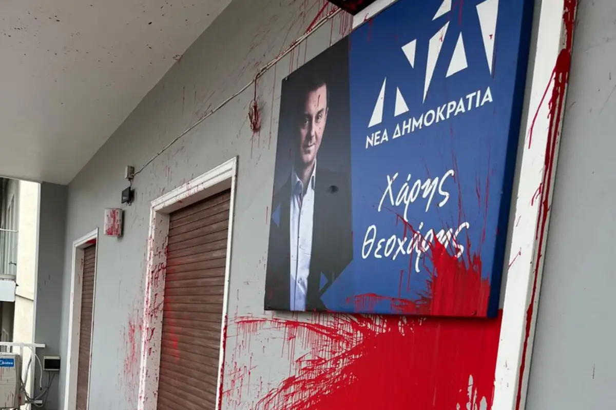 Άγνωστοι πέταξαν μπογιές και έγραψαν συνθήματα στην πρόσοψή του γραφείου του.