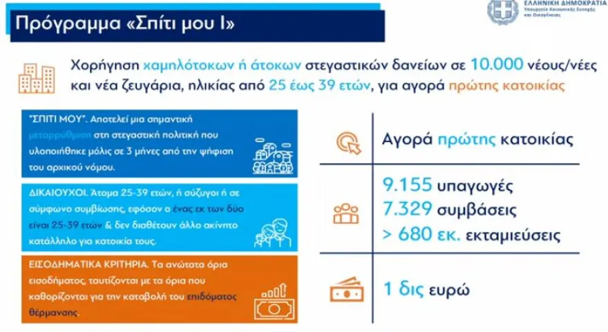 50% άτοκο δάνειο από το Ταμείο Ανάκαμψης Νέο Πρόγραμμα Στεγαστικών δανείων πρώτης κατοικίας