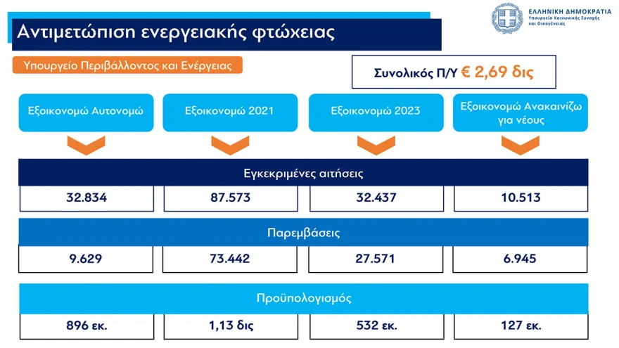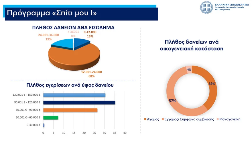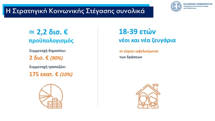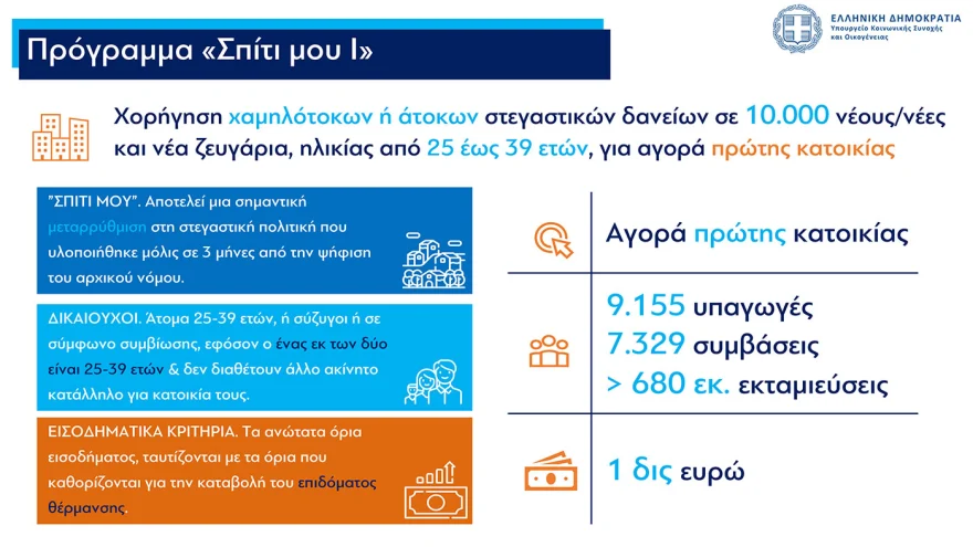Πόροι 3,2 δισ. ευρώ μέχρι τώρα μέσω προγραμμάτων όπως «Σπίτι Ι» το οποίο έχει εκταμιευθεί 7.123 δανείων ποσό 685 εκατ. ευρώ μέχρι το τέλος χρονιάς θα φτάσει τα 9.185 δάνεια.