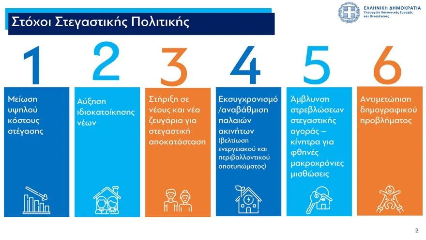 Η κυρία Ζαχαράκη εξειδικεύοντας τα μέτρα ανέφερε ότι η Ελλάδα μπήκε και αυτή στο ευρωπαϊκό «χορό» που επηρεάζεται αρνητικά από την έλλειψη στέγης. Στην κατεύθυνση αυτή, ανακοινώθηκε το «Σπίτι μου 2», που έρχεται να συμπληρώσει το «Σπίτι μου 1».