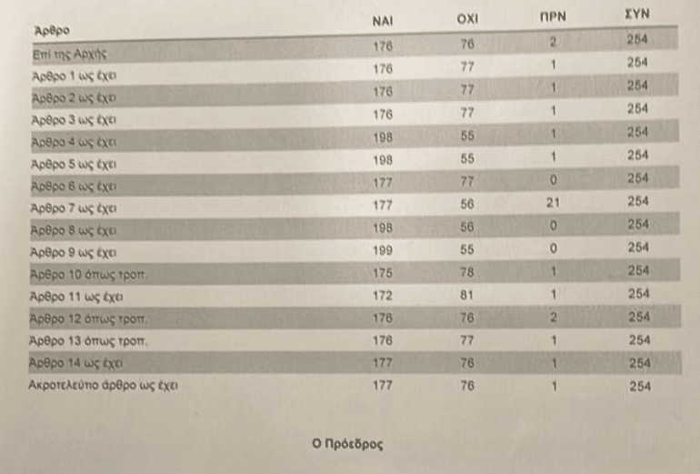 Το νομοσχέδιο, μετά από δύο ημέρες συζήτησης στην Ολομέλεια όπου δυστυχώς κυριάρχησαν ο ακραίος λόγος, οι θρησκευτικές παραβολές, μέχρι και οι μισαλλόδοξες και ρατσιστικές αναφορές, έλαβε 176 θετικές ψήφους (από ΝΔ, ΣΥΡΙΖΑ, ΠΑΣΟΚ, Νέα Αριστερά και Πλεύση Ελευθερίας) έναντι 76 «όχι», ενώ δύο τάχθηκαν με το «παρών». Στην ψηφοφορία συμμετείχαν 254 βουλευτές και απουσίασαν συνολικά 46 βουλευτές, με όλα σχεδόν τα κόμματα να μετρούν απώλειες…