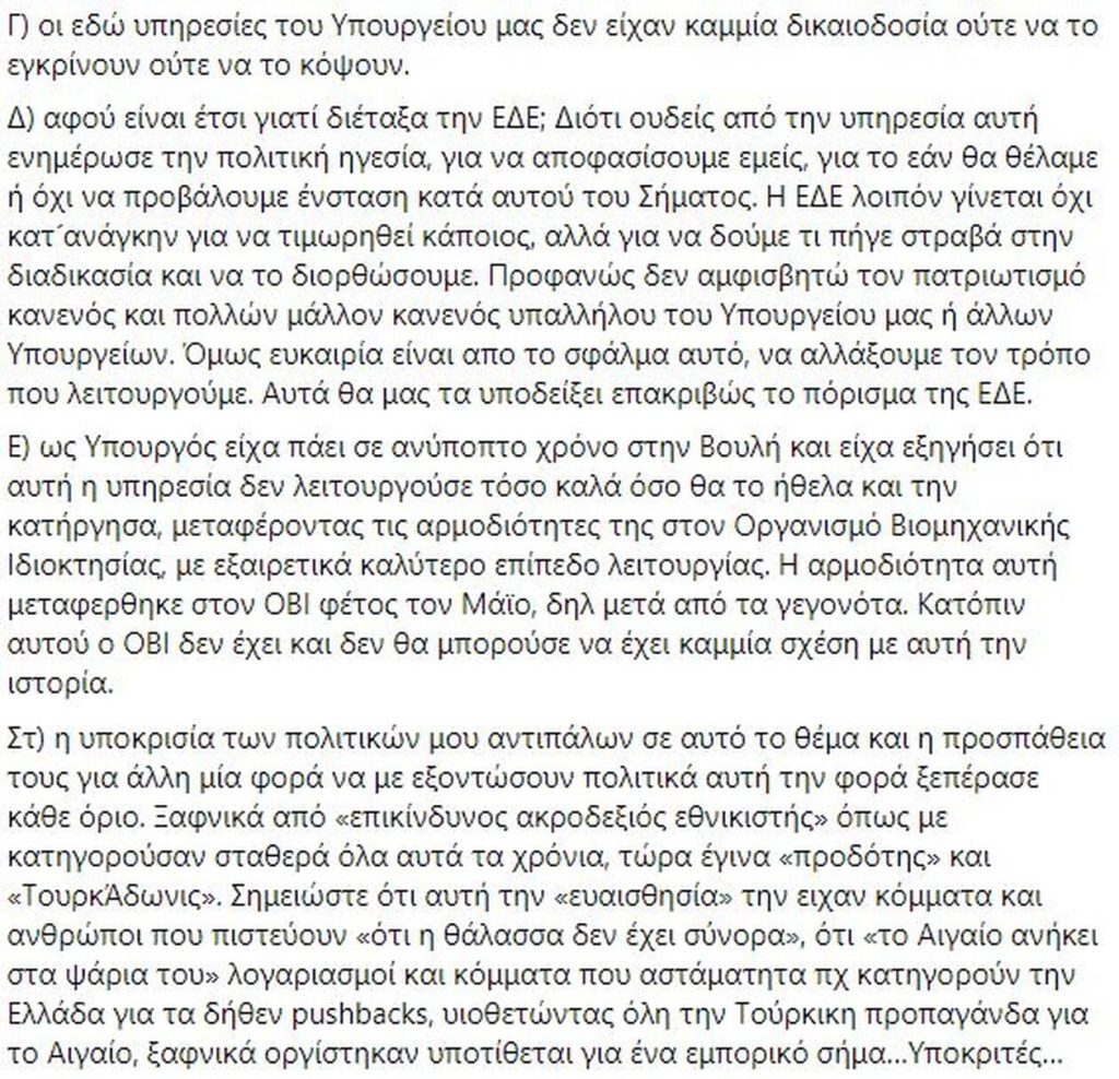 Στ) η υποκρισία των πολιτικών μου αντιπάλων σε αυτό το θέμα και η προσπάθεια τους για άλλη μία φορά να με εξοντώσουν πολιτικά αυτή την φορά ξεπέρασε κάθε όριο. Ξαφνικά από «επικίνδυνος ακροδεξιός εθνικιστής» όπως με κατηγορούσαν σταθερά όλα αυτά τα χρόνια, τώρα έγινα «προδότης» και «ΤουρκΆδωνις». Σημειώστε ότι αυτή την «ευαισθησία» την ειχαν κόμματα και ανθρώποι που πιστεύουν «ότι η θάλασσα δεν έχει σύνορα», ότι «το Αιγαίο ανήκει στα ψάρια του» λογαριασμοί και κόμματα που αστάματητα πχ κατηγορούν την Ελλάδα για τα δήθεν pushbacks, υιοθετώντας όλη την Τούρκικη προπαγάνδα για το Αιγαίο, ξαφνικά οργίστηκαν υποτίθεται για ένα εμπορικό σήμα…Υποκριτές…