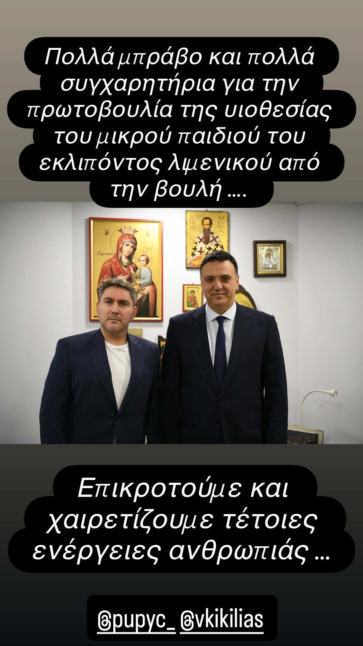 Ένα μεγάλο ευχαριστώ από καρδιάς ένοιωσε την ανάγκη να εκφράσει ο Cpt Γιώργος Βάλλης προς τον υπουργό Ναυτιλίας και Νησιωτικής Πολιτικής κ. Βασίλη Κικίλια για το γεγονός ότι υιοθετήθηκε από τη Βουλή ο άτυχος γιος του ήρωα ναυτικού Ανδρέα Αραχωβίτη, που έχασε τη ζωή του στο Παράλιο Άστρος.