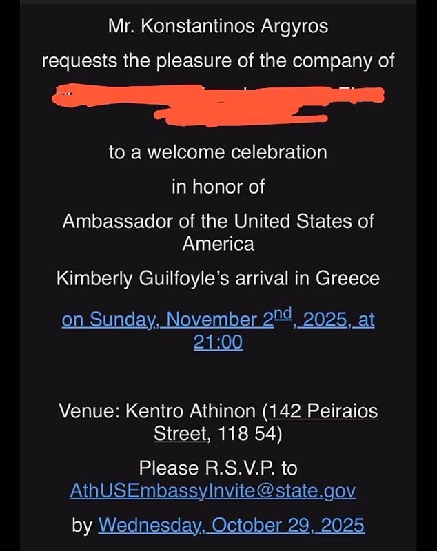 Η Κίμπερλι Γκιλφόιλ ορκίστηκε το μεσημέρι της Δευτέρας στο Στέιτ Ντιπάρτμεντ, αναλαμβάνοντας επίσημα τα καθήκοντά της ως νέα πρέσβειρα των Ηνωμένων Πολιτειών στην Ελλάδα — γράφοντας ιστορία ως η πρώτη γυναίκα που καταλαμβάνει αυτή τη θέση.