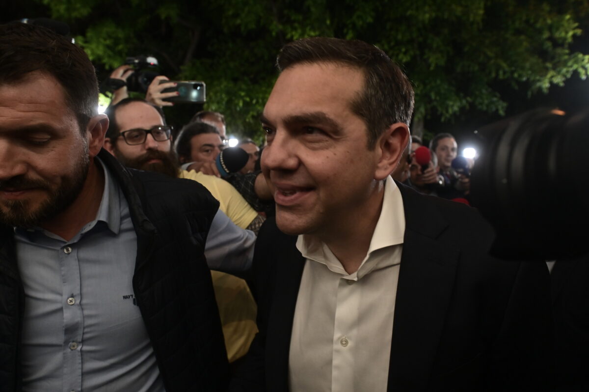 Ο κ. Τσίπρας έφτασε στην Κουμουνδούρου, στα κεντρικά γραφεία του ΣΥΡΙΖΑ, λίγο μετά τις 21:00 της Κυριακής, όταν πλέον τα exit polls είχαν επιβεβαιωθεί και αναθεωρούνταν επί τα χείρω για τον ΣΥΡΙΖΑ από τα επίσημα αποτελέσματα. Πληροφορίες αναφέρουν ότι επικοινώνησε με τον κ. Μητσοτάκη για να τον συγχαρεί για τη νίκη του, ενώ φέρεται να συμφώνησε και στη μείωση της δεύτερης προεκλογικής περιόδου, με τις δεύτερες εκλογές να γίνονται αντί για τις 2 Ιουλίου στις 25 Ιουνίου.