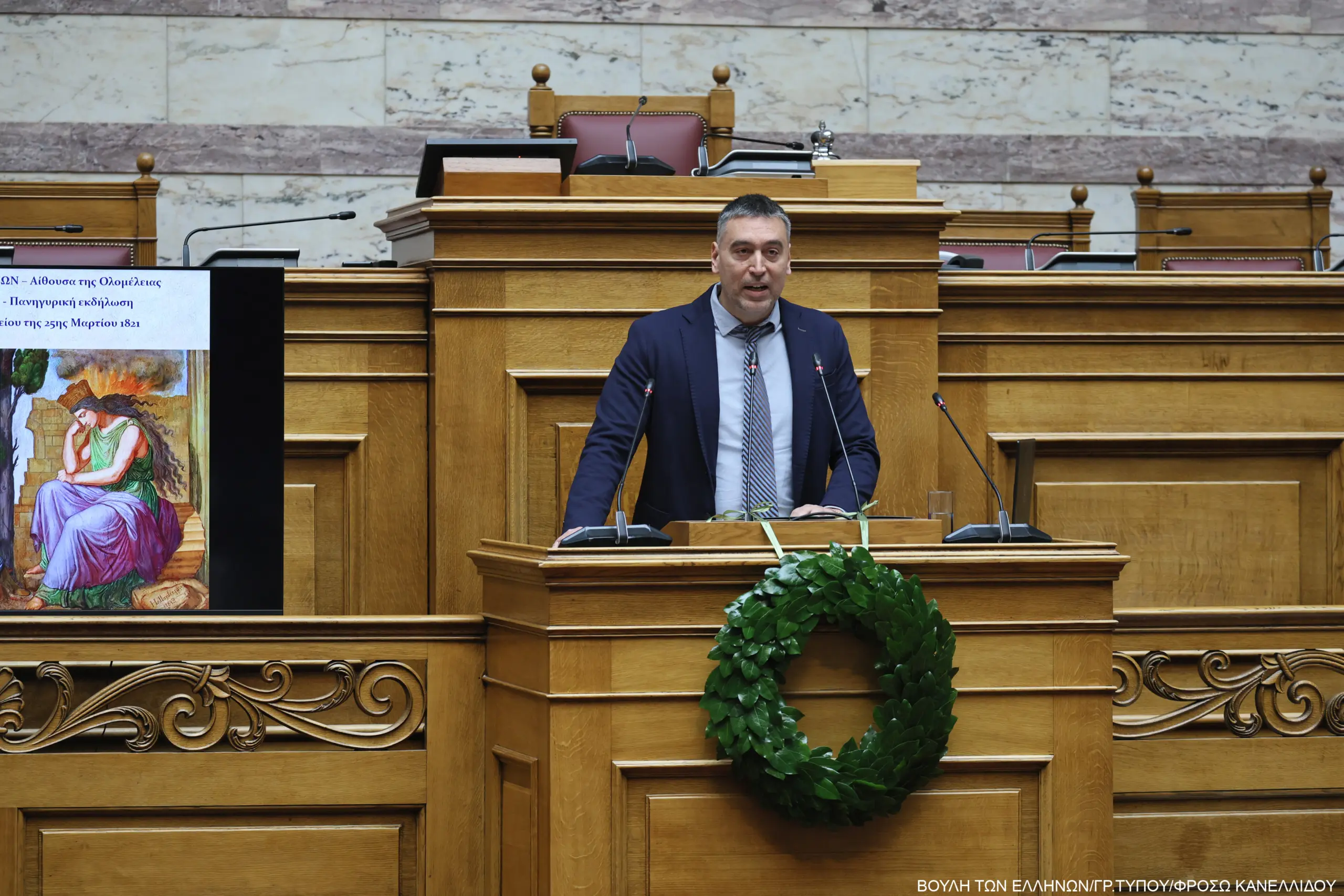 Την εκδήλωση προσφώνησε ο Πρόεδρος του Συλλόγου των Υπαλλήλων της Βουλής κ. Σπυρίδων Δημοσχάκης, ο οποίος επεσήμανε ότι «η 25η Μαρτίου είναι ημέρα μνήμης, τιμής αλλά και ευθύνης. Η ελευθερία που απολαμβάνουμε σήμερα δεν ήταν δεδομένη. Αποκτήθηκε με θυσίες και για αυτό οφείλουμε να τη διαφυλάξουμε». Τόνισε πως «ιδιαιτέρως οι νέοι είναι επιφορτισμένοι με βαριά ευθύνη, τη μεταλαμπάδευση των ιδανικών της ελευθερίας και της δημοκρατίας στις επόμενες γενιές», υπογραμμίζοντας ότι «η γνώση του παρελθόντος είναι απαραίτητη για την κατανόηση του παρόντος και τη διαμόρφωση ενός καλύτερου μέλλοντος».