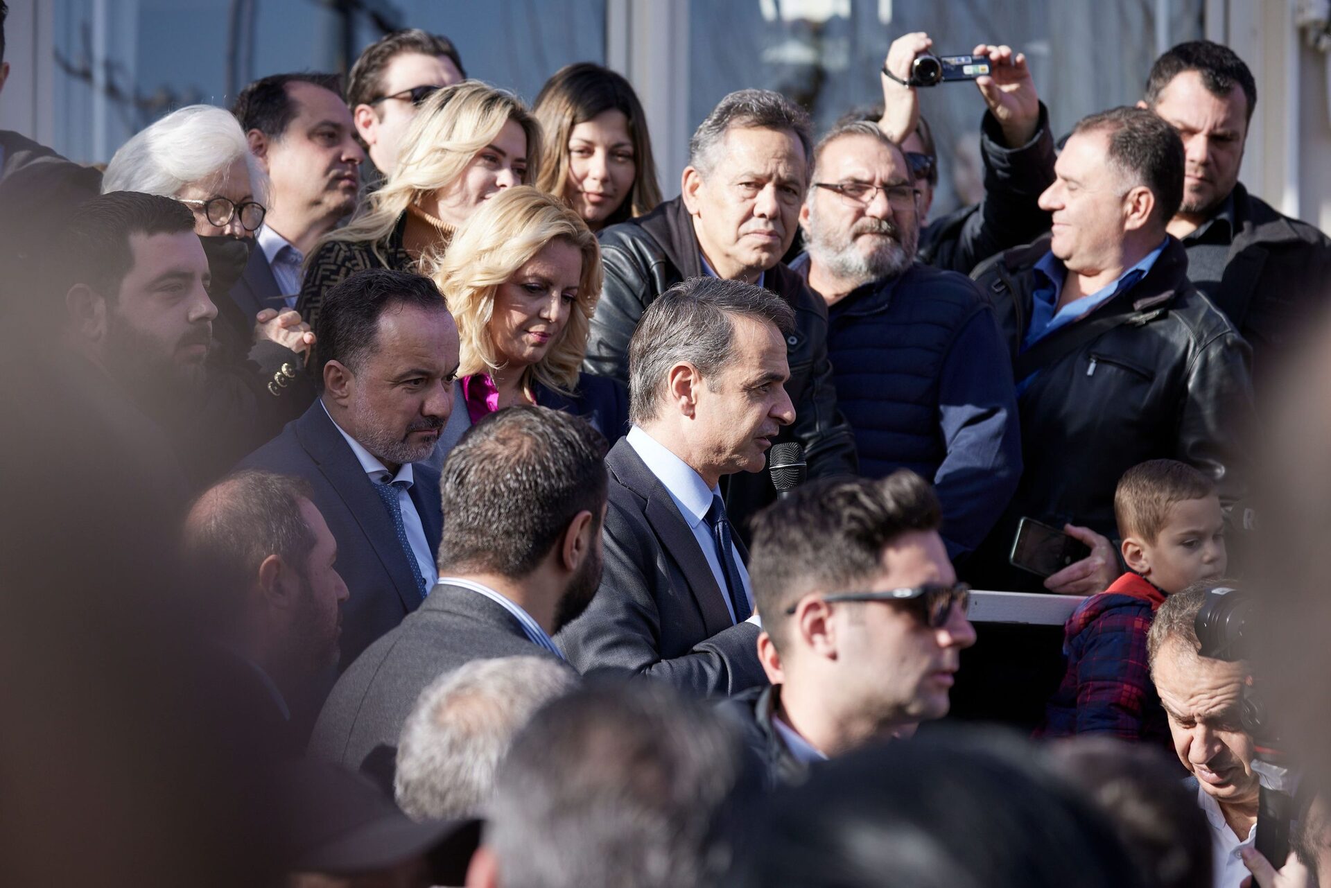 Λίγο νωρίτερα ο Κυριάκος Μητσοτάκης μίλησε σε κατοίκους του του Αυλώνα που είχαν συγκεντρωθεί να τον υποδεχθούν καθ’ οδόν προς την εκδήλωση στις εγκαταστάσεις της Ελληνικής Αεροπορικής Βιομηχανίας (ΕΑΒ) στην Τανάγρα Βοιωτίας.