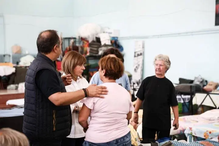 Η κυρία Σακελλαροπούλου, συνοδευόμενη από τον Δήμαρχο Καρδίτσας Βασίλη Τσιάκο, επισκέφθηκε αρχικά, παρουσία του Μητροπολίτη Τιμοθέου, το Γηροκομείο Ιεράς Μητρόπολης Θεσσαλιώτιδος και Φαναριοφερσάλων, και ακολούθως το 1ο Δημοτικό Σχολείο, στα οποία φιλοξενούνται πλημμυροπαθείς.