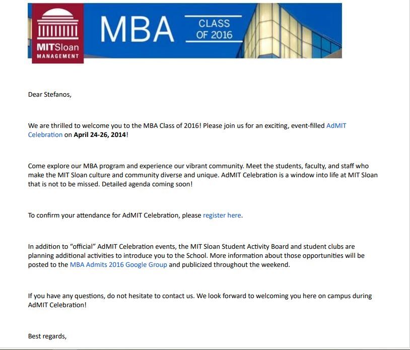 1. Όσον αφορά στη δήθεν απόλυση από την G.S., στις 17 Μαρτίου 2014 και ενόσω εργαζόταν σε αυτήν, ο κ. Κασσελάκης γίνεται δεκτός από το ΜΙΤ για μεταπτυχιακές σπουδές στη διοίκηση επιχειρήσεων (βλ. συνημμένο Νο 1). Για την εισαγωγή του στο κορυφαίο Πανεπιστήμιο έλαβε συστατικές επιστολές από τους προϊσταμένους του στη Goldman Sachs. Η αποχώρησή του από τη G.S. έγινε ώστε να συνεχίσει ανώτερες σπουδές στο παραπάνω γνωστικό αντικείμενο.