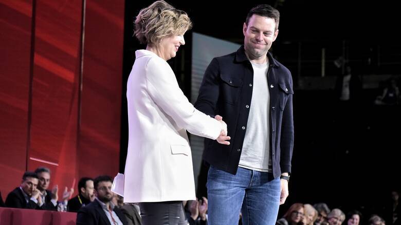 Ο Στέφανος Κασσελάκης, μόλις η κυρία Γεροβασίλη ολοκλήρωσε την ομιλία της – και αφού επιχείρησε να κατευνάσει τα πνεύματα με νοήματα προς τους σνυέδρους να σταματήσουν τις αποδοκιμασίες – ανέβηκε αιφνιδιαστικά στο βήμα και αφού την χαιρέτησε κατέθεσε τη δική του πρόταση για εκλογές στις 10 Μαρτίου και υβριδικά.
