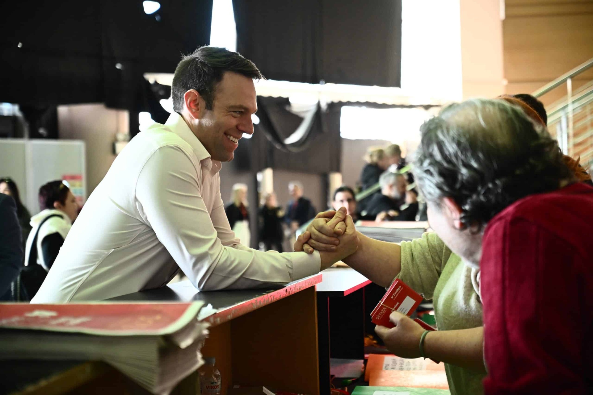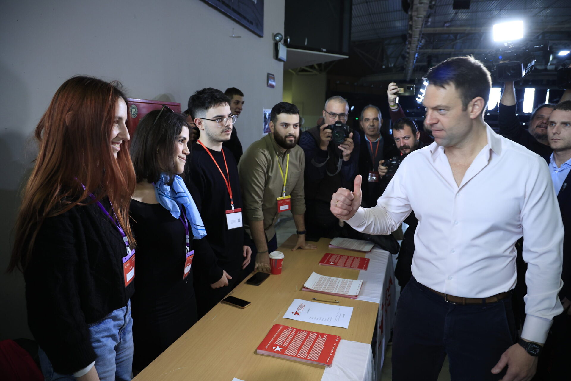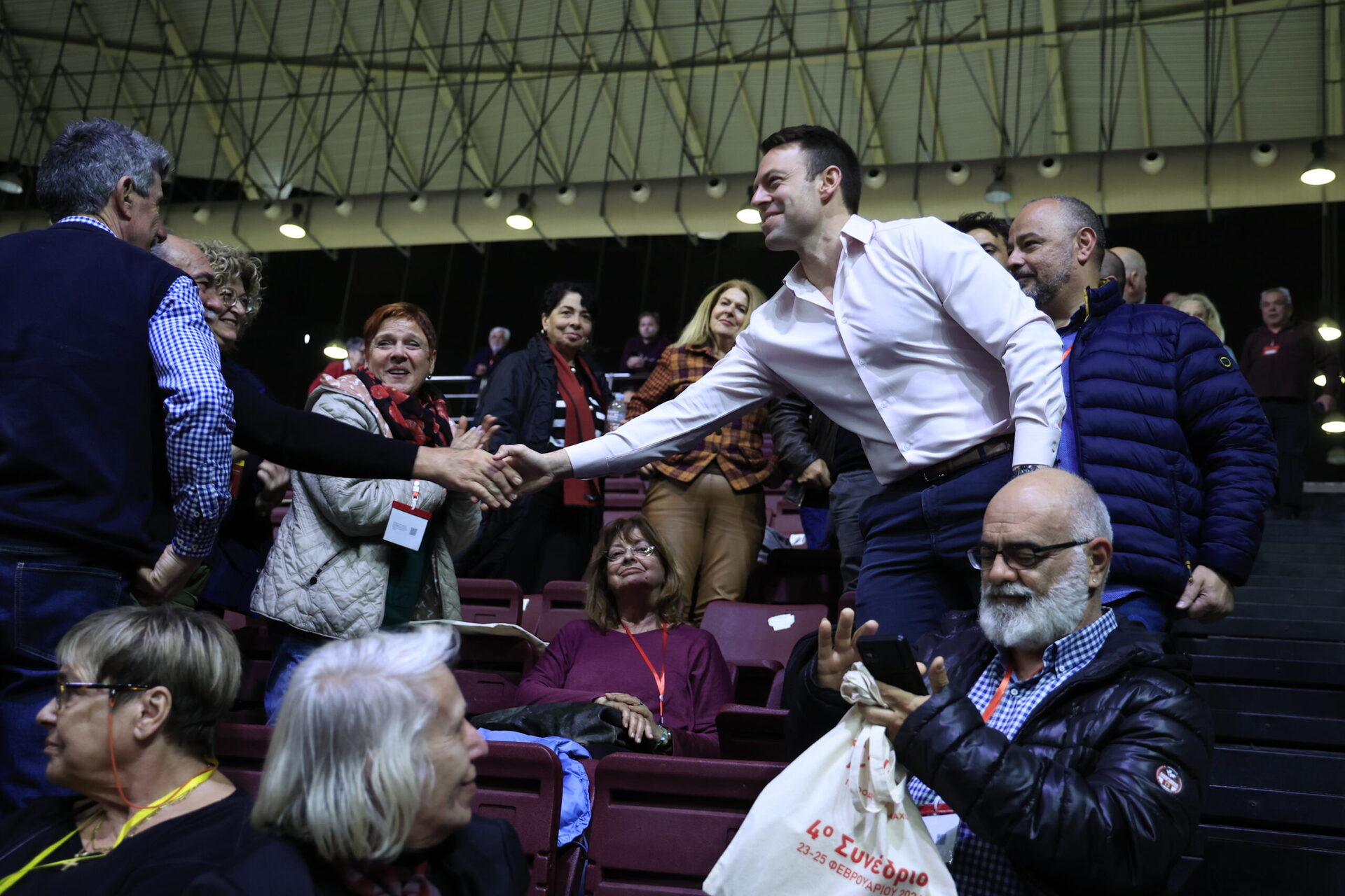 Ο Στέφανος Κασσελάκης βρέθηκε στους χώρους του Tae Kwon Do μίλησε με νεαρούς εθελοντές, συνάντησε συνέδρους, ανέβηκε στις κερκίδες, έβγαλε φωτογραφίες μαζί τους και σήκωσε και πανό ενότητας.