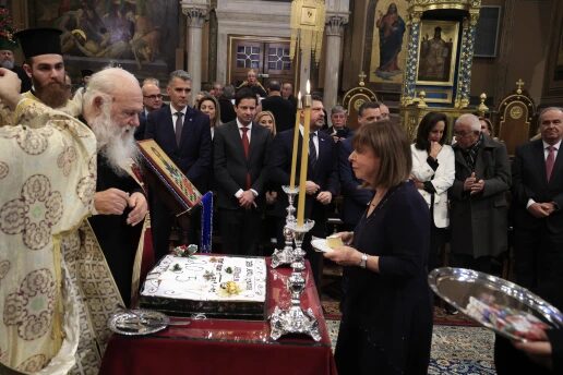 Η Πρώτη Πολίτης της χώρας υποδέχθηκε στο Προεδρικό Μέγαρο την μπάντα των Ενόπλων Δυνάμεων, της Προεδρικής Φρουράς και πλήθος συλλόγων. Σαφές κοινωνικό μήνυμα έστειλε η Πρόεδρος της Δημοκρατίας, Κατερίνα Σακελλαροπούλου, υποδεχόμενη στο Προεδρικό Μέγαρο μικρά παιδιά, άτομα μεγαλύτερης ηλικίας αλλά και συλλόγους διατήρησης της παράδοσης. Η μπάντα των Ενόπλων Δυνάμεων παραδοσιακά και η Προεδρική Φρουρά έψαλαν για αρχή τα κάλαντα της Πρωτοχρονιάς αλλά και τα κάλαντα Χίου και Σίφνου στην Πρόεδρο της Δημοκρατίας και ακολούθησαν διαδοχικά Σύλλογοι Μέριμνας Νέων, Πνευματικά Ιδρύματα και άλλοι φορείς.