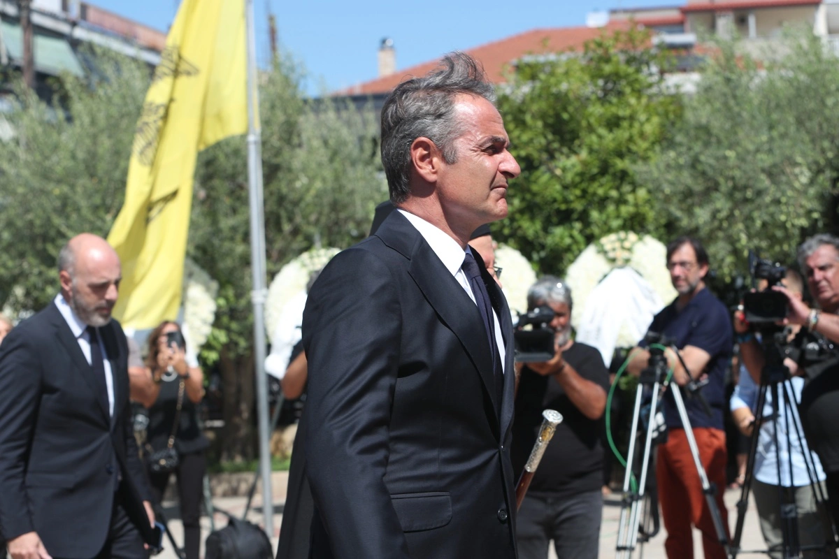 Λίγο πριν τις 12:00 το μεσημέρι έφτασε και ο πρωθυπουργός, Κυριάκος Μητσοτάκης, για να αποχαιρετήσει τον Απόστολο Βεσυρόπουλο, έναν εκ των πλέον στενών συνεργατών του στο κυβερνητικό σχήμα.