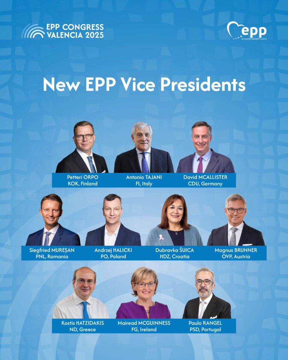 Σύμφωνα με τα αποτελέσματα της ψηφοφορίας αντιπρόεδροι ακόμα εξελέγησαν οι: Orpo, Tajani, Mc Allister, Muresan, Halicki, Suica, Brunner, McGuinness και Rangel.