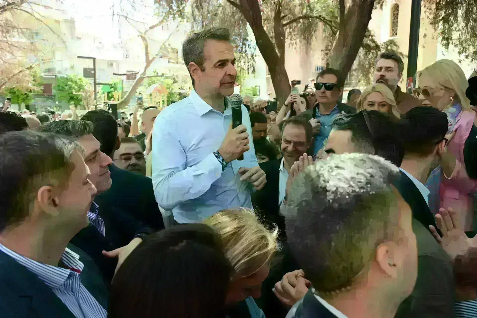 Ο Κυριάκος Μητσοτάκης μίλησε σε πολίτες του Μοσχάτου και μπαίνοντας σε ένα κουρείο, ο κουρέας προσφέρθηκε να τον κουρέψει με τον ίδιο να απαντά: «Σαν τον Κασσελάκη θα με κουρέψατε και εμένα;» και συνέχισε: «Εγώ δεν συνηθίζω να κουρεύομαι με κάμερες».