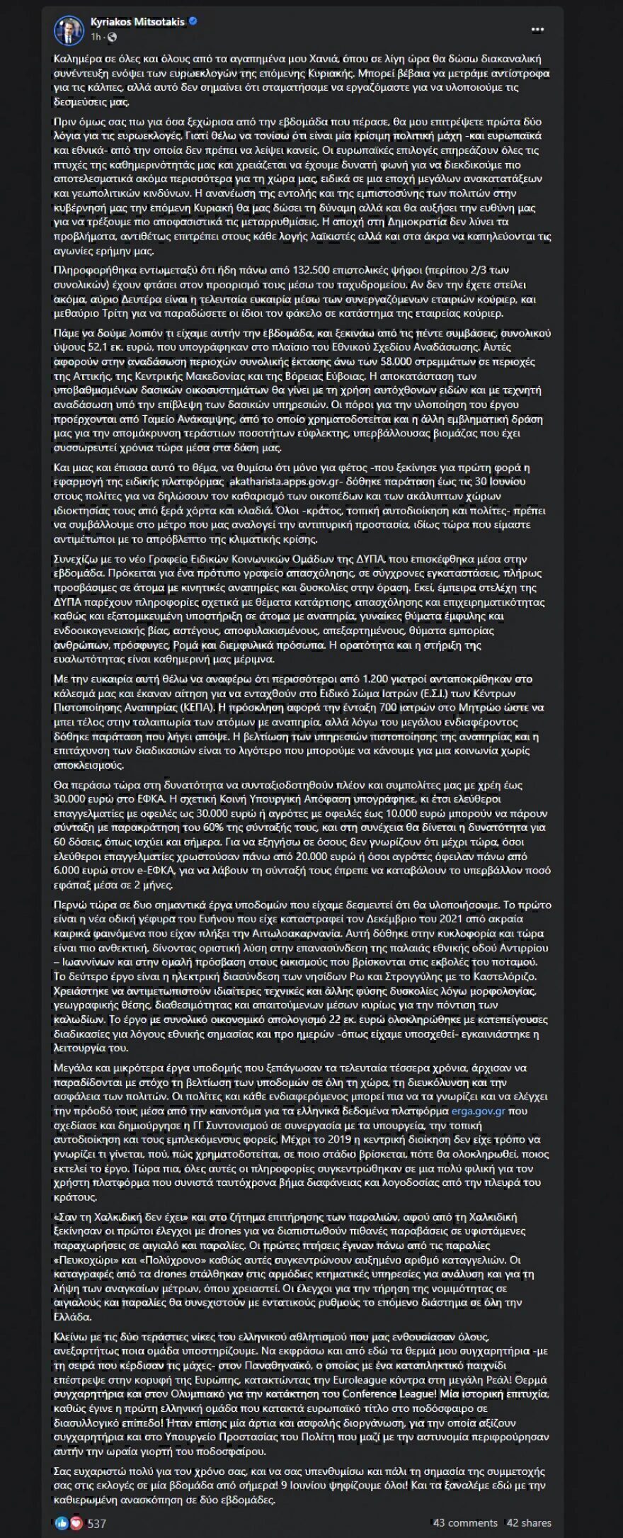 Αναλυτικά η ανάρτηση του πρωθυπουργού: