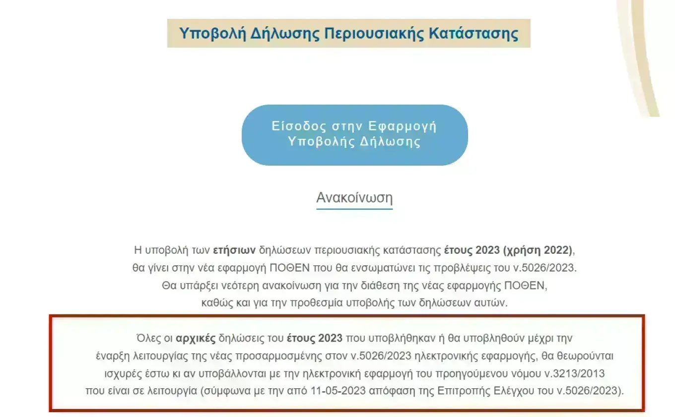 Θα μπορούσε από την πρώτη μέρα ανάληψης των καθηκόντων του το 2023 να την έχει υποβάλει ηλεκτρονικά αφού, παρά τους ισχυρισμούς του, η πλατφόρμα pothen.gr ήταν και παραμένει ανοικτή για να την υποβάλει ακόμη και σήμερα.