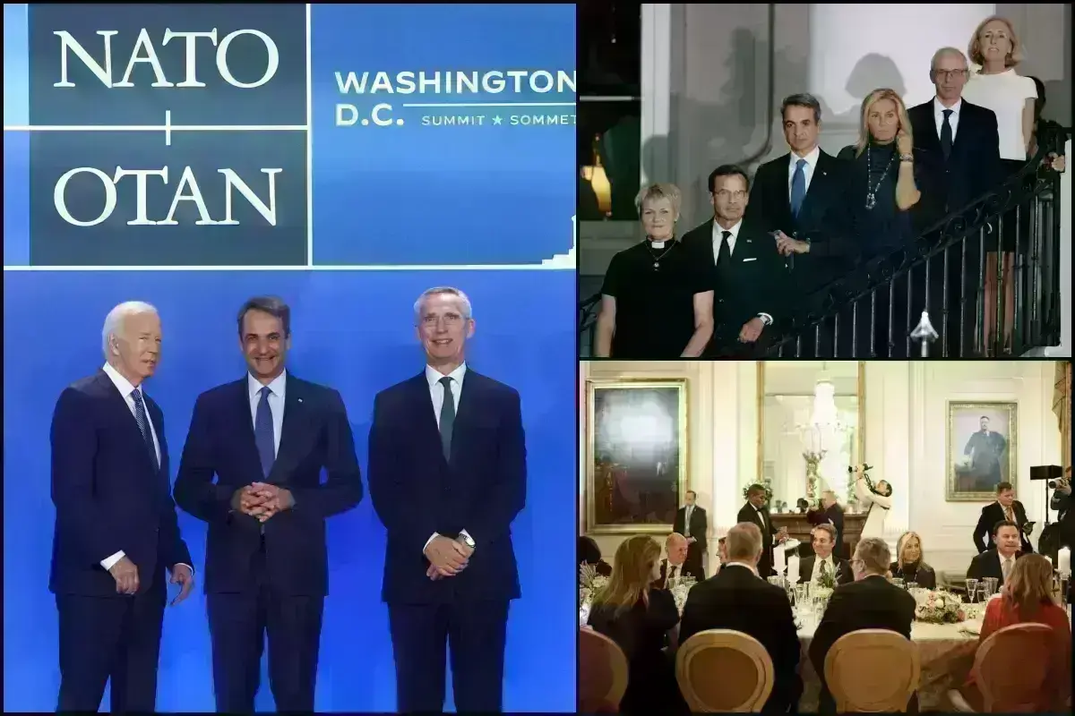 Κοινωνικό δείπνο το αποκάλεσε ο Λευκός Οίκος και όχι δείπνο εργασίας όπως συνηθίζεται στο περιθώριο των Συνόδων του ΝΑΤΟ και έτσι η ατμόσφαιρα ήταν πιο χαλαρή για τους ηγέτες των 32 χωρών μελών της Συμμαχίας ανάμεσα στους οποίους ο Κυριάκος Μητσοτάκης και η σύζυγός του Μαρέβα Γκραμπόφσκι.