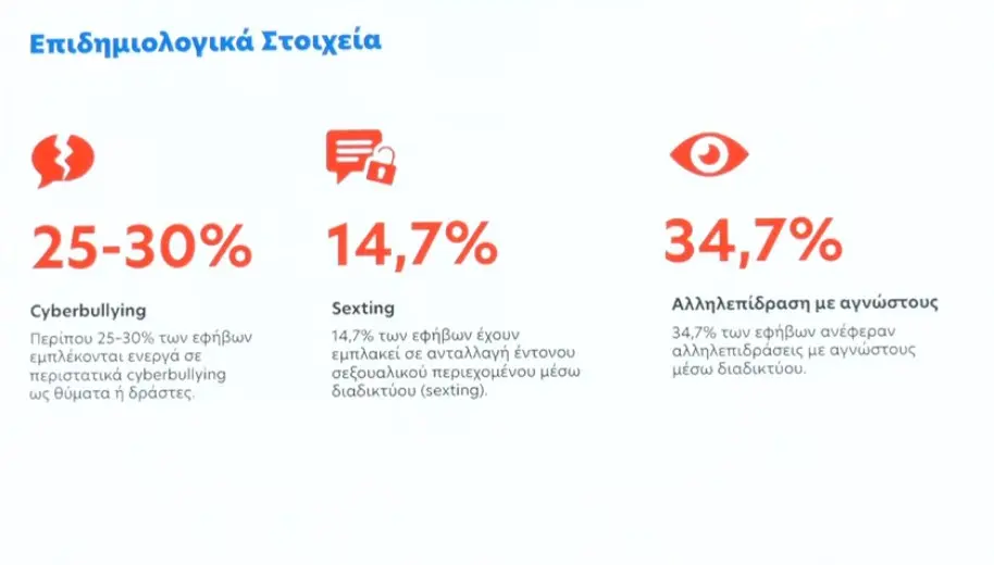 Ο κ. Γεωργιάδης αναφέρθηκε στα συμπτώματα και τις συνέπειες της χρήσης των social media σε μικρές ηλικίες, τόσο στη σωματική και ψυχική υγεία όσο και στο επίπεδο της κοινωνικής συμπεριφοράς, παρουσιάζοντας συγκεκριμένα στοιχεία για την έκταση του φαινομένου.