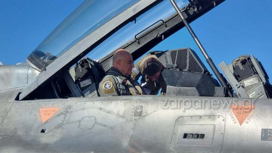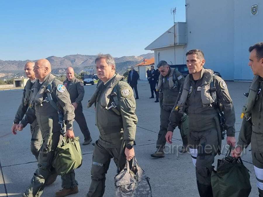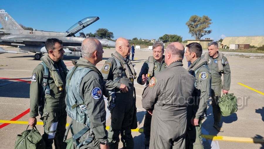 Λίγο μετά τις 10:15 ο Υπουργός Άμυνας αφού ολοκλήρωσε την ενημέρωση, επιβιβάστηκε σε ένα αεροσκάφος F 16 Viper της Πολεμικης Αεροπορίας της 340 μοίρας 115 ΠΜ και συμμετείχε σε πτήση πάνω από το Αιγαίο πέλαγος σε σχηματισμό αεροσκαφών Viper με την συμμετοχή του Αρχηγού Γενικού Επιτελείου Αεροπορίας και του Αρχηγού ΓΕΕΘΑ.
