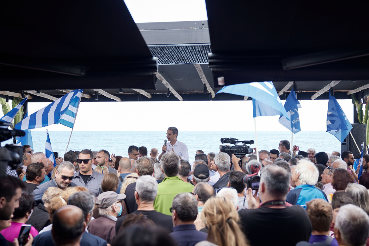 Νωρίτερα ο Κυριάκος Μητσοτάκης επισκέφθηκε και τον Μακρύ Γιαλό όπου περπάτησε στον παραλιακό πεζόδρομο και συνομίλησε με κατοίκους και καταστηματάρχες.