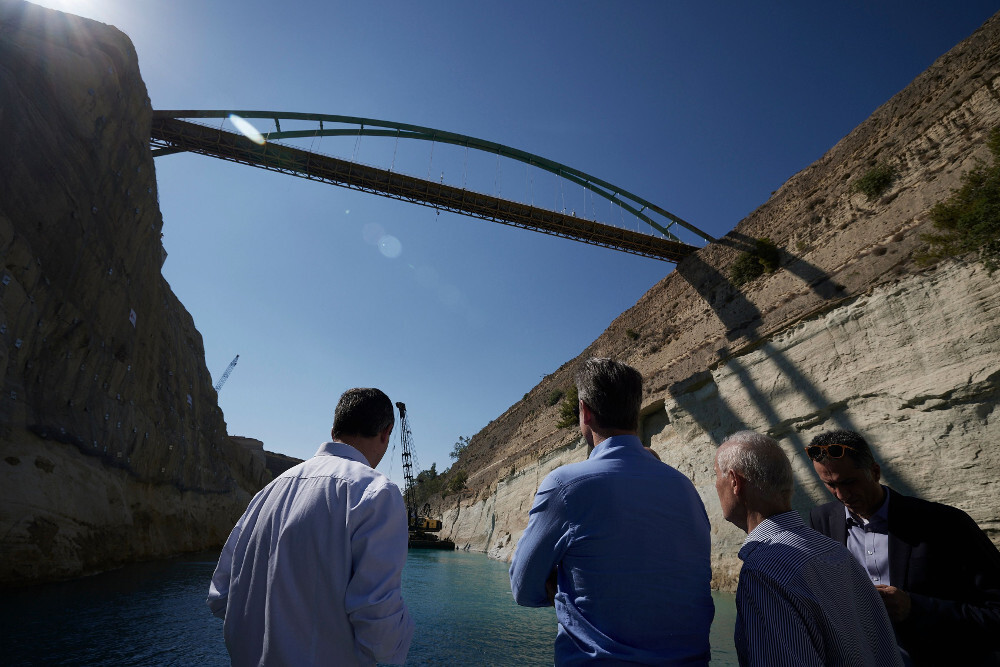 Ο Πρωθυπουργός είχε τη δυνατότητα να διασχίσει με πλωτό μέσο τη Διώρυγα προκειμένου να ενημερωθεί για τα έργα, τα οποία παραδίδονται προσωρινά τη Δευτέρα 4 Ιουλίου, καθώς ολοκληρώνεται η πρώτη φάση των παρεμβάσεων μετά τις μεγάλες καταπτώσεις χωμάτινων όγκων που σημειώθηκαν τον Νοέμβριο του 2020, τον Ιανουάριο και τον Φεβρουάριο του 2021.